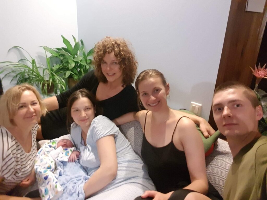 Po dotarciu do mieszkania spojrzałam na telefon i okazało się, że przed chwilą dzwoniła Klaudia, niedługo potem była już u nas. Wykąpałam się, skontaktowałam z naszą położną, umyłam warzywa przyniesione z ogródka, część zaniosłam sąsiadce. Wypiliśmy coś, Starszy szybko poszedł spać, sprzątaliśmy mieszkanie: mąż zmył podłogę, Klaudia okna, ja podlałam kwiaty. Wtedy już boleśnie napinała mi się macica i dołączyły inne porodowe objawy 😉