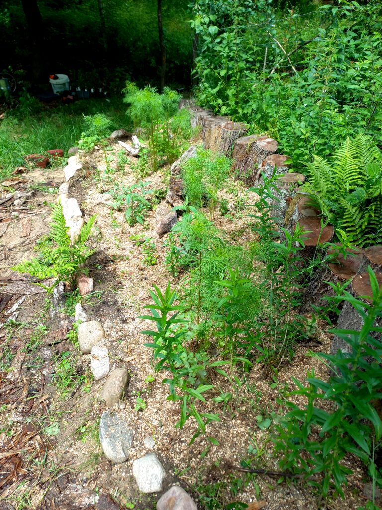 Całość wymagała ogrodzenia – udało mi się zrobić to samej mocując siatkę leśną do drzew i kilku wkopanych słupków. Praca nie była łatwa, ale satysfakcjonująca. A krzewy zostały ocalone przed głodnymi leśnymi sąsiadami. 🙂