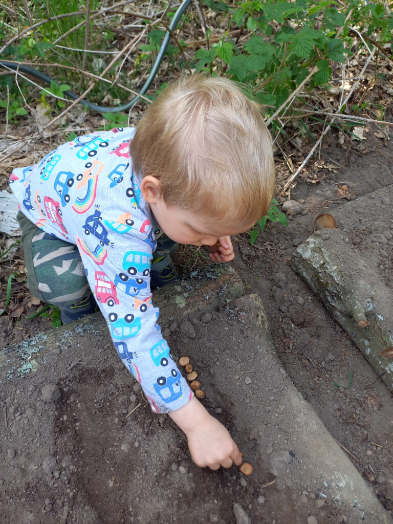 1. Sianie. Podczas wiosennych (i nie tylko wiosennych) zasiewów nawet niespełna dwuletnie dziecko może „pomagać”. Uczyć się i bawić przy „robiącym swoje” dorosłym. Być może, zamiast jednego podejścia do zadania, będziemy siać na parę razy, jednak myślę, że warto. Dobrze, żeby nasiona, które dziecko wysiewa były duże, szybko kiełkowały i wyrastało z nich coś, co dziecko lubi! U nas najlepiej sprawdza się groszek, (jedzony w każdym stadium dojrzewania), ale mogą to być rzodkiewki lub kwiaty w ulubionym kolorze…