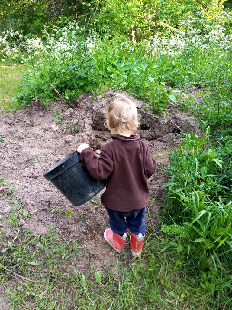 7. Zabawa ziemią, też pracą 😉 Wskażmy małym pomocnikom miejsce, w którym mogą kopać, używać naszych narzędzi, pousuwać „chwasty”, czy wymyślić coś kreatywniejszego, niż nam przyszłoby do głowy. 🙂 W końcu zadaniem naszych dzieci jest rozwijanie się, przez zabawę. To jest ich najważniejszą pracą!