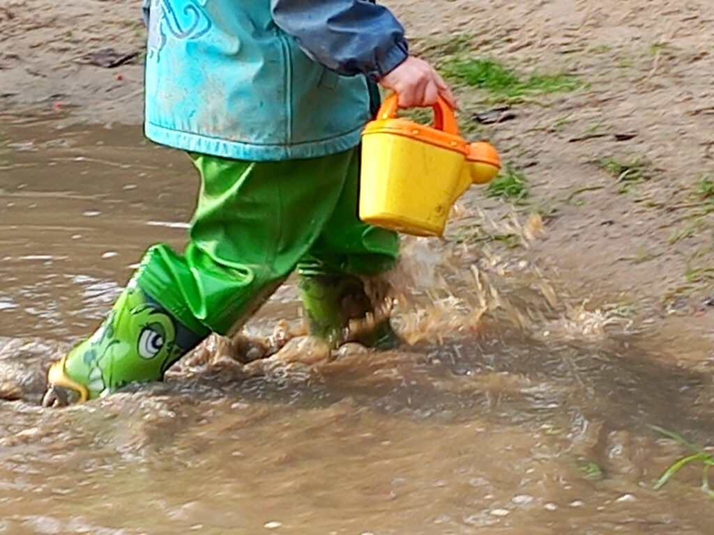 2. Podlewanie. WODA – najlepsza zabawka, więc wszystko co jej dotyczy (prócz mycia zębów i głowy :p ) stanowi frajdę. Wykorzystajmy plastikowe konewki z zestawów zabawek do piasku, butelki z dziubkiem lub udostępnijmy swoje najmniejsze konewki i niech maluchy pomagają. Najlepiej podlewać z asystą, kiedy jest ciepło lub pogodzić się z koniecznością przebrania dzieciaków w suche ubrania.